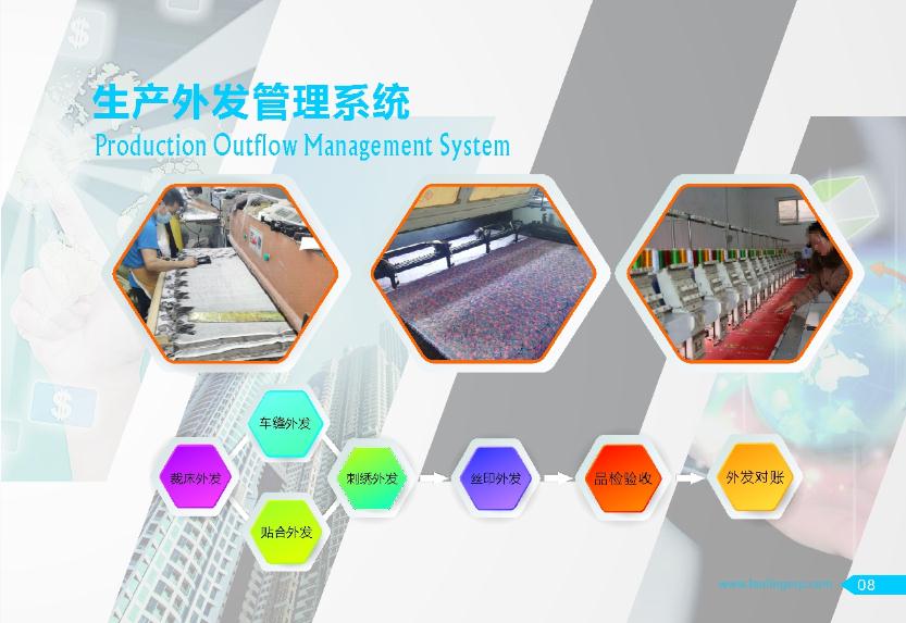 倉庫、生產(chǎn)工藝、生產(chǎn)外發(fā)、貨品銷售、財務(wù)應(yīng)收應(yīng)付。